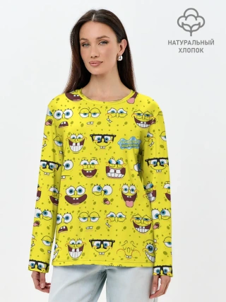 Лонгслив женский. Хлопок / Губка Боб паттерн