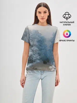 Женская базовая футболка / Зимний пейзаж картина маслом