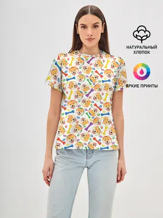 Женская футболка оверсайз / Шиба ину паттерн