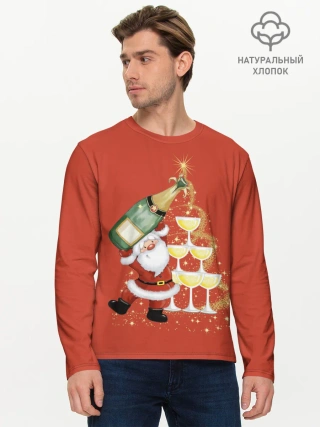 Мужской лонгслив базовый / Дед Мороз и шампанское