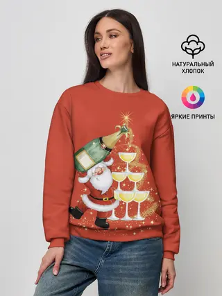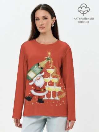 Лонгслив женский. Хлопок / Дед Мороз и шампанское