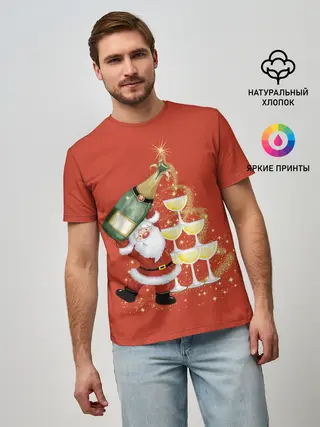 Мужская футболка оверсайз / Дед Мороз и шампанское