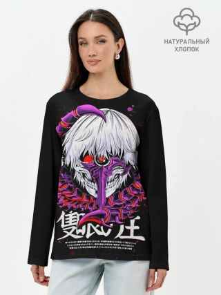 Лонгслив женский. Хлопок / Токийский гуль: Кен Канеки