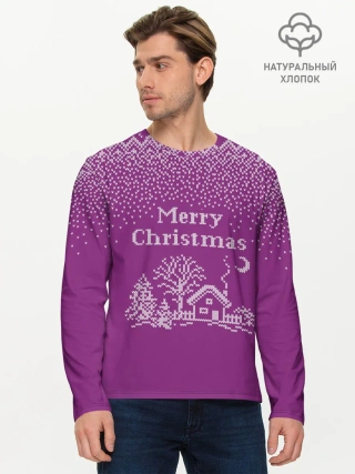 Мужской лонгслив базовый / Новогодний дом.