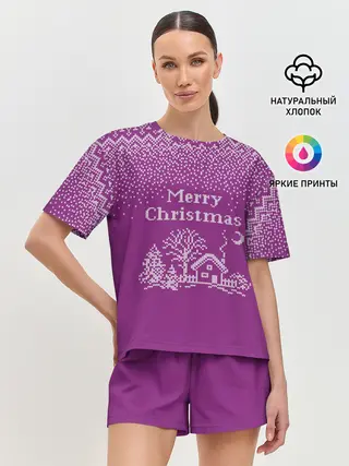 Женская пижама с шортами / Новогодний дом.
