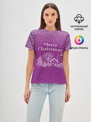 Женская базовая футболка / Новогодний дом.