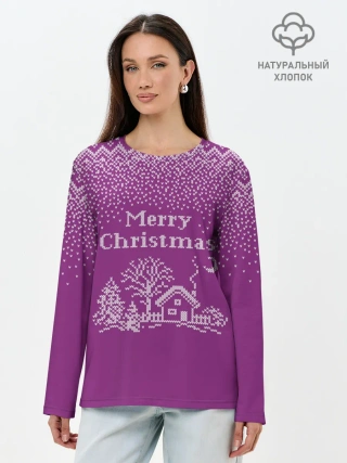 Лонгслив женский. Хлопок / Новогодний дом.