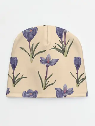 Женская базовая футболка / Цветы шафрана на бежевом фоне