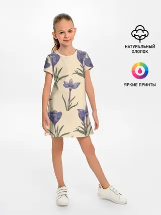 Детская базовая футболка / Цветы шафрана на бежевом фоне