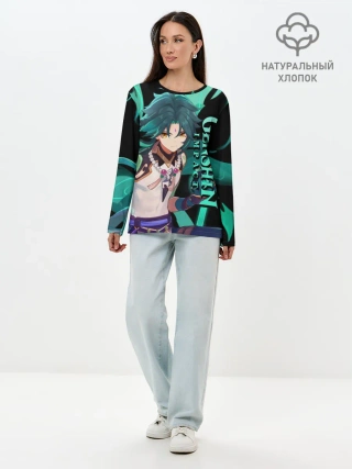 Лонгслив женский. Хлопок / Геншин импакт: Сяо