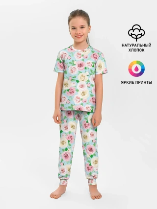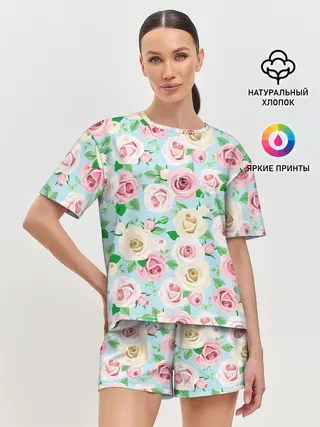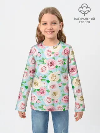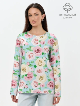 Лонгслив женский. Хлопок / Цветущее поле роз
