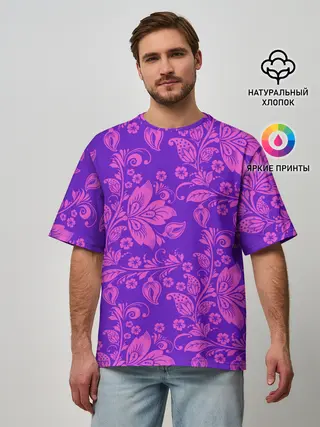 Мужская футболка оверсайз / ФИОЛЕТОВАЯ ХОХЛОМА