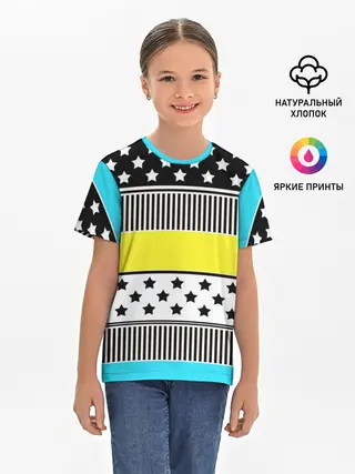 Детская базовая футболка / Неоновый яркий полосатый узор