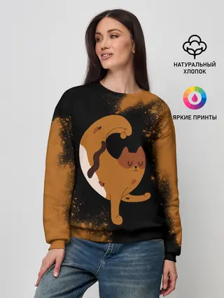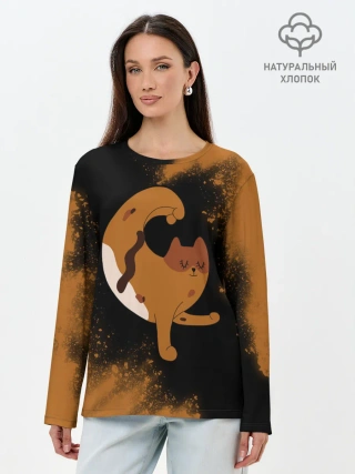 Лонгслив женский. Хлопок / Кошачья Йога - Взрыв