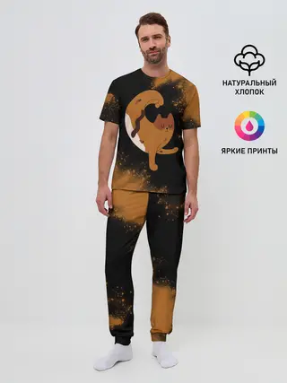 Мужская пижама с брюками / Кошачья Йога - Взрыв