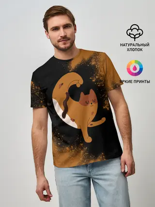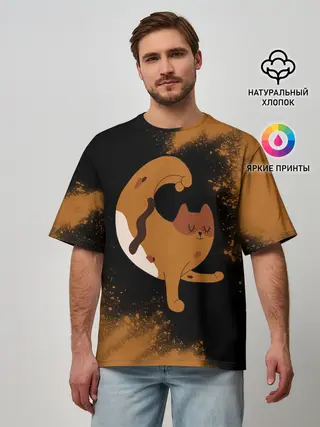 Мужская футболка оверсайз / Кошачья Йога - Взрыв
