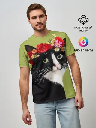 Мужская базовая футболка / Кот и цветы