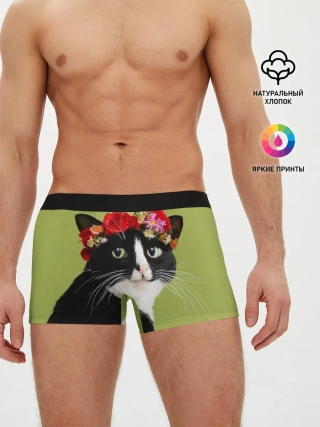 Мужские трусы боксеры / Кот и цветы