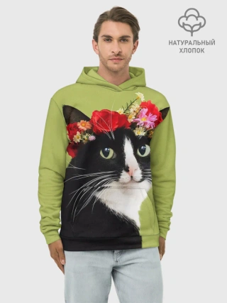 Худи мужской база хлопок / Кот и цветы