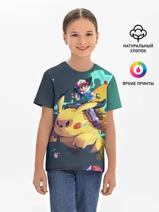 Детская базовая футболка / Эш с Пикачу