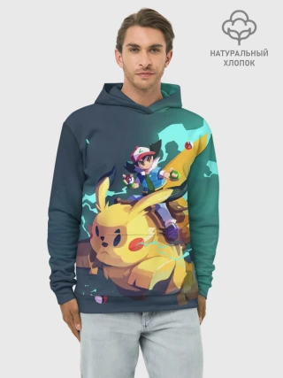 Худи мужской база хлопок / Эш с Пикачу