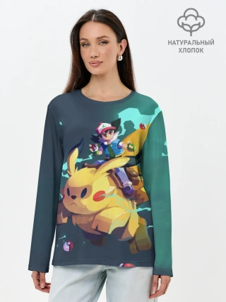 Лонгслив женский. Хлопок / Эш с Пикачу