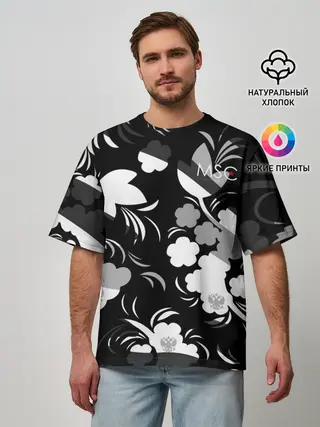 Мужская футболка оверсайз / Russia | Камуфляж белый