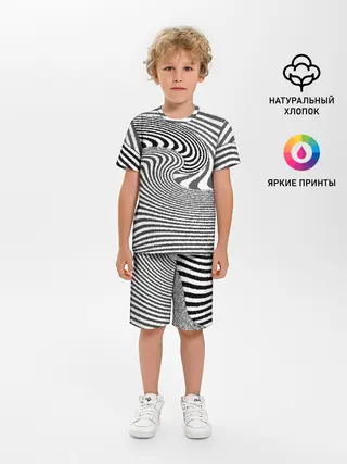 Детская пижама с шортами / Черно белый мозаичный узор