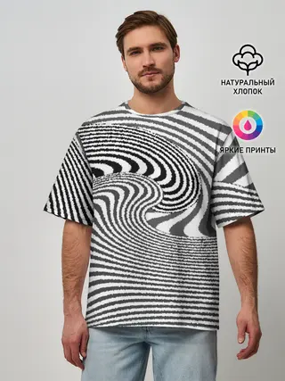 Мужская футболка оверсайз / Черно белый мозаичный узор