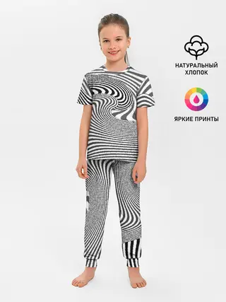 Детская пижама с брюками / Черно белый мозаичный узор