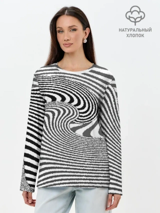 Лонгслив женский. Хлопок / Черно белый мозаичный узор