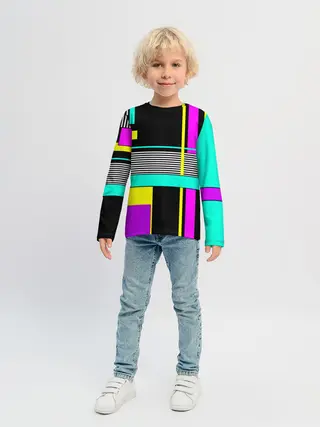 Детский лонгслив / Геометрический неоновый узор