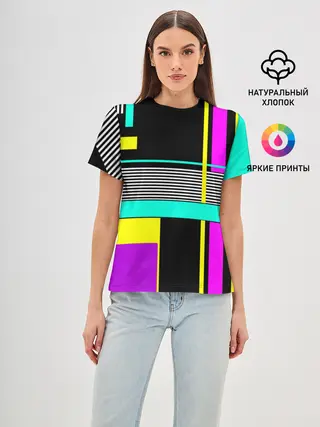 Женская базовая футболка / Геометрический неоновый узор