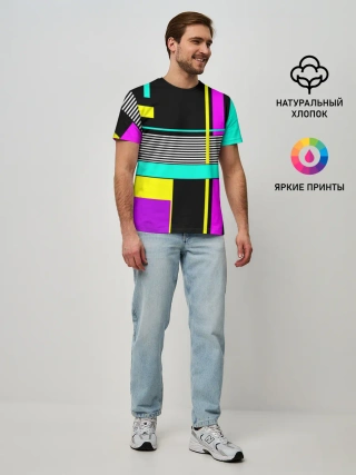 Мужская базовая футболка / Геометрический неоновый узор