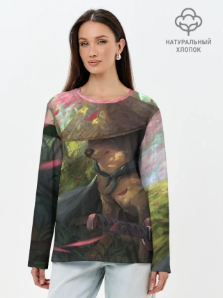 Лонгслив женский. Хлопок / Собака Самурай плачет мем