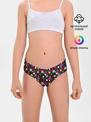 Трусы для девочек / Разноцветный горох на черном