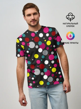 Мужская базовая футболка / Разноцветный горох на черном