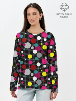 Лонгслив женский. Хлопок / Разноцветный горох на черном