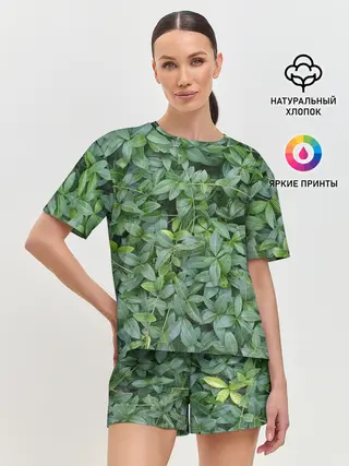 Женская футболка оверсайз / Красные тюльпаны на зеленом