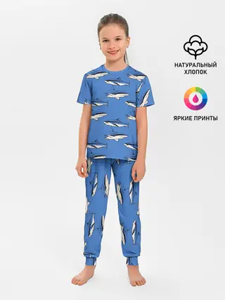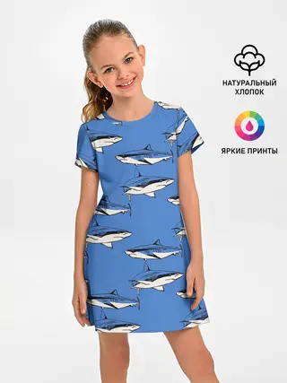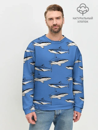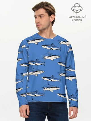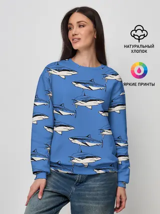 Лонгслив женский. Хлопок / Акулы Паттерн