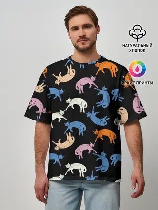 Мужская футболка оверсайз / Британские кошки паттерн