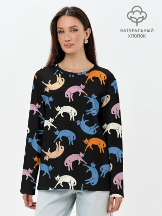 Лонгслив женский. Хлопок / Британские кошки паттерн