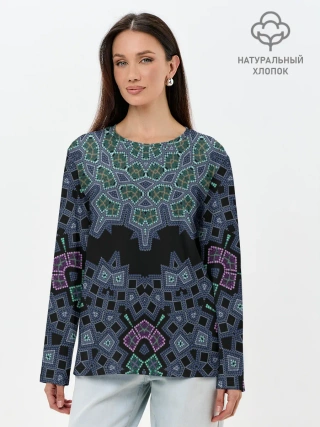 Лонгслив женский. Хлопок / Перламутровый узор восточный
