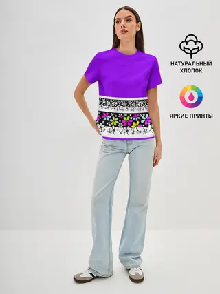 Женская базовая футболка / Яркий фиолетовый цветочный
