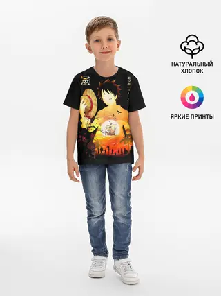 Мужская футболка оверсайз / Силуэт Луффи One piece