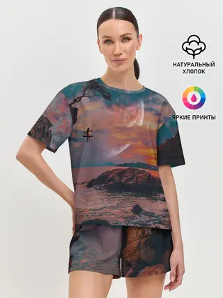 Женская футболка оверсайз / Фиолетовый цвет весны