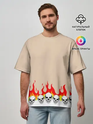 Мужская футболка оверсайз / Черепа в Огне