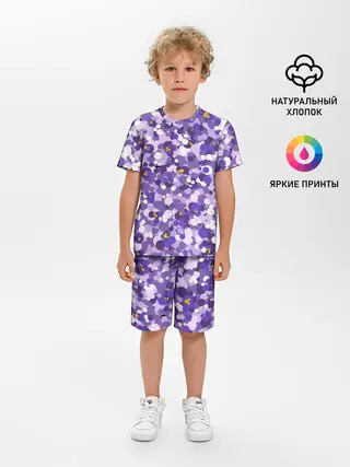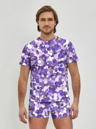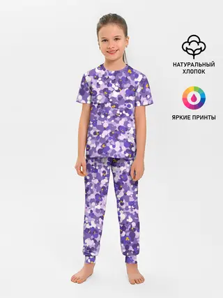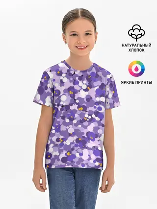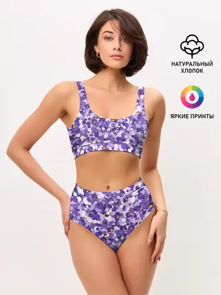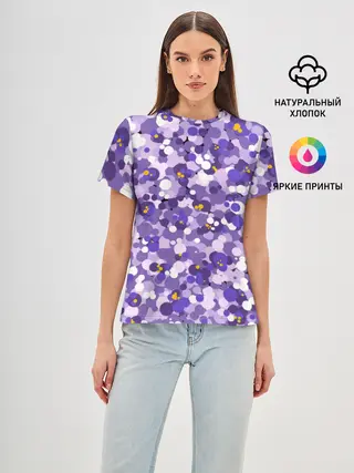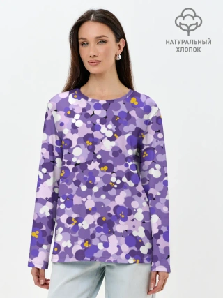 Лонгслив женский. Хлопок / Анютины глазки узор