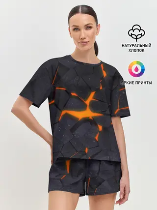 Женская пижама с шортами / ТРЕЩИНЫ ЗЕМЛИ | 3D CRACKS | НЕОН