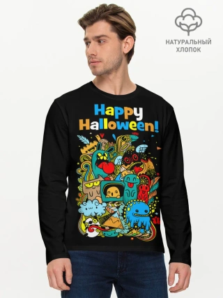 Мужской лонгслив базовый / Монстры празднуют Хеллоуин